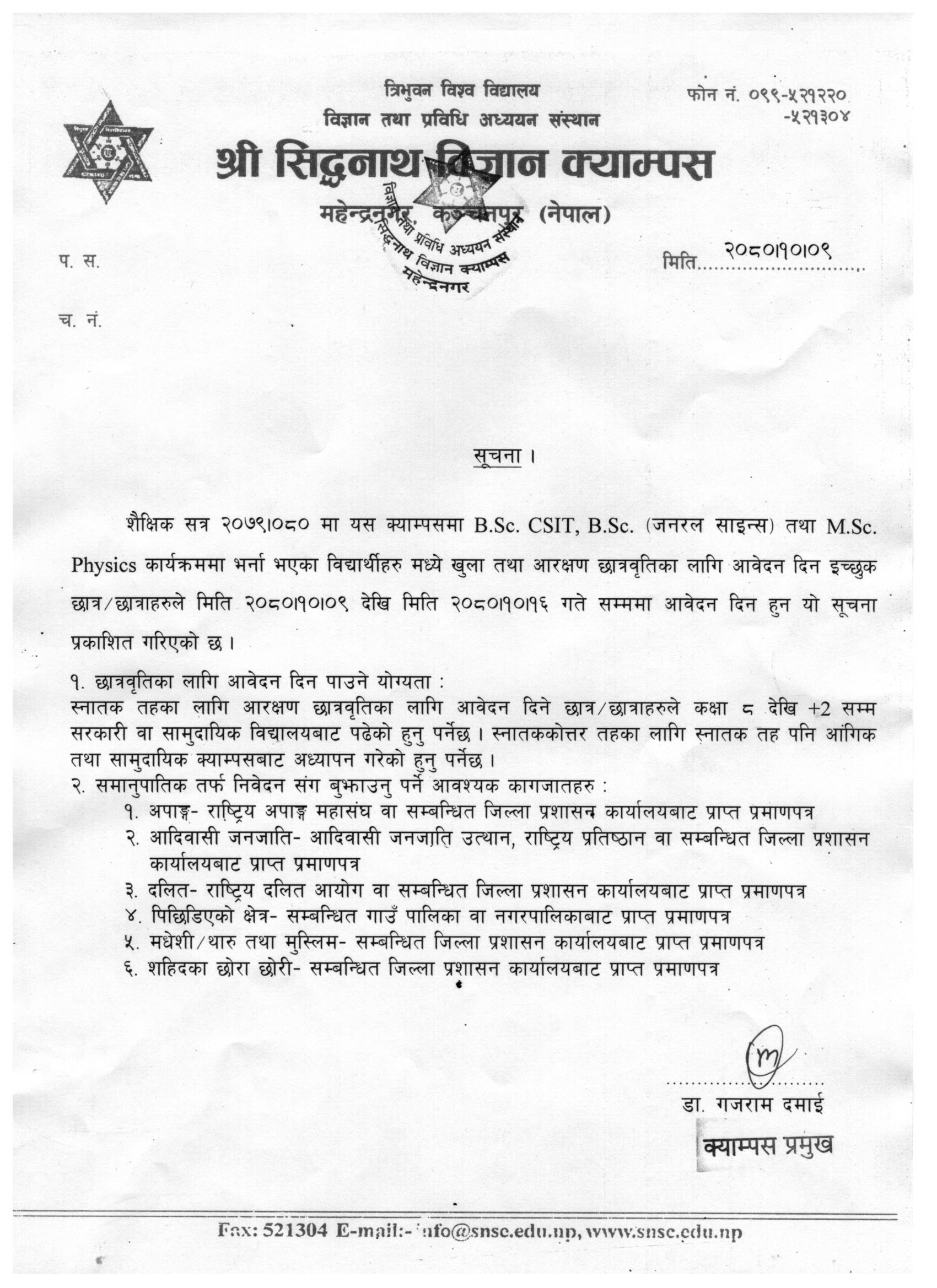 छात्रवृति सम्बन्धि सूचना