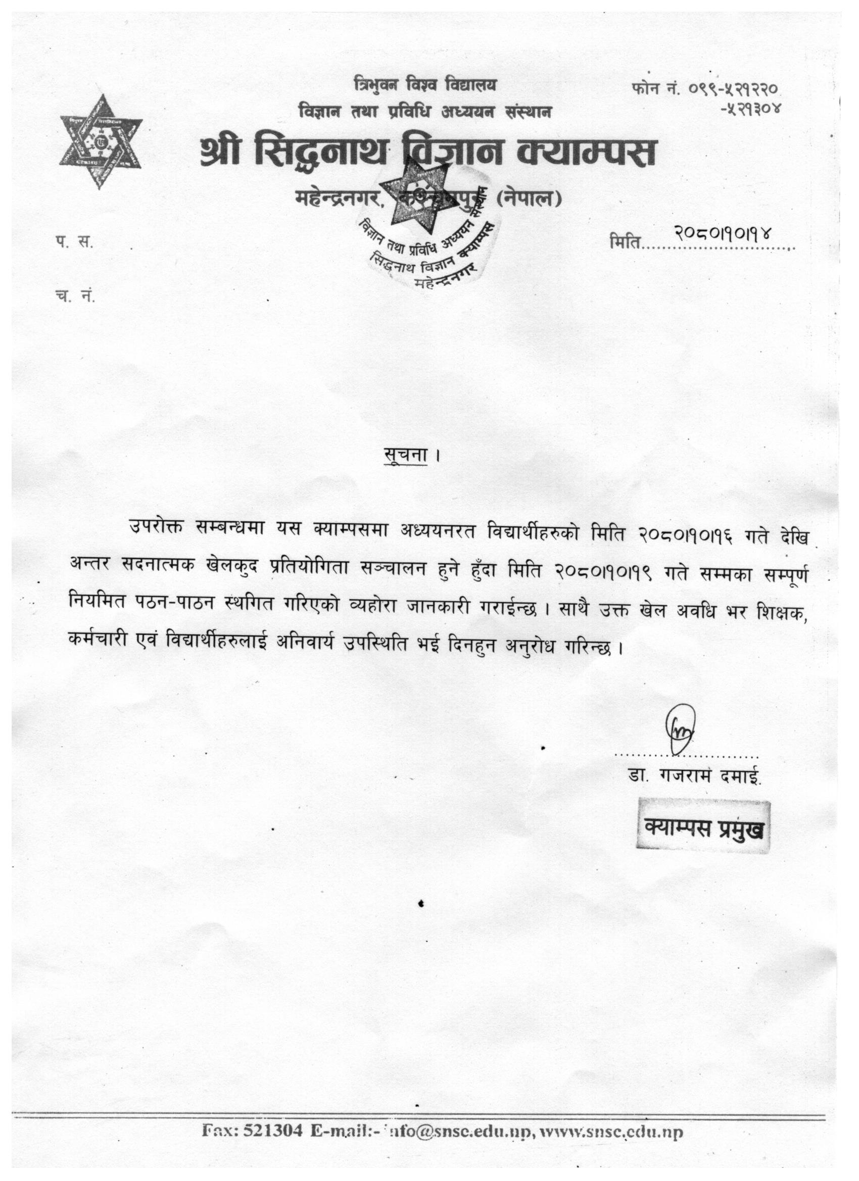 खेलकुद प्रतियोगिता सञ्चालन सम्बन्धि सूचना